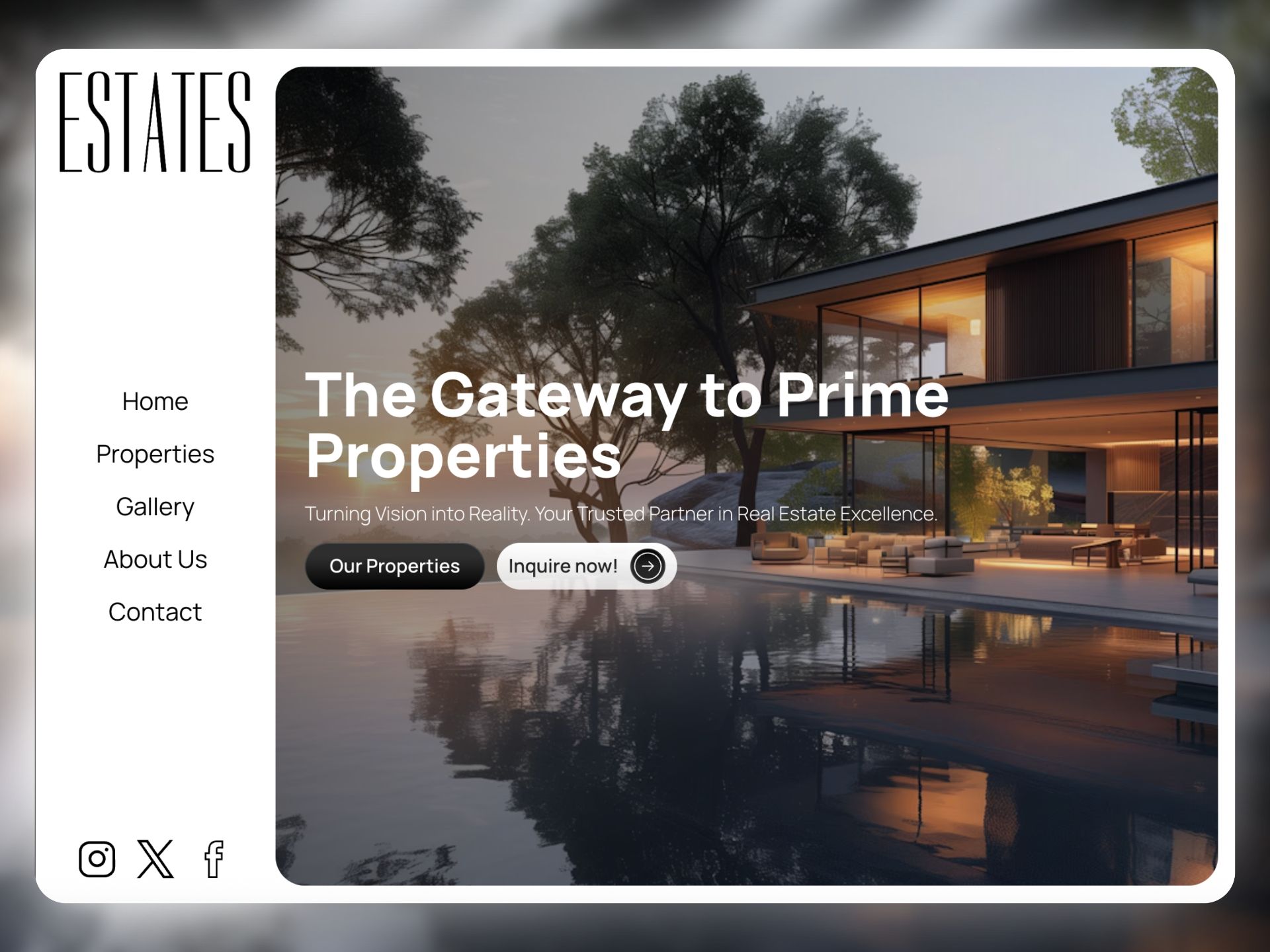 A refined, minimalistic real estate site with a soft cream background, subtle gray accents, and clean typography. The user-friendly design creates a calm, elegant experience — perfect for showcasing luxury properties with understated sophistication.
